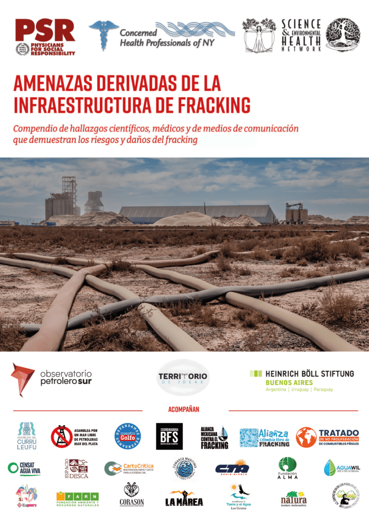 El Compendio de hallazgos científicos, médicos y de medios de comunicación que demuestran los riesgos y daños del fracking es una compilación completamente referenciada de pruebas que demuestran los riesgos y los efectos nocivos del fracking. El documento es público y de acceso libre, y está alojado en los sitios web de las organizaciones de profesionales de la salud Concerned Health Professionals of New York (www.concernedhealthny.org) y Physicians for Social Responsibility (www.psr.org). Traducción de la sección dedicada a la infraestructura de fracking a cargo de Laura Beratti y Laura García. Revisión técnica: Nancy Piñeiro.